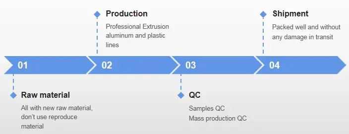 JE keskittyy aina alumiinin ja muovisen raaka-aineiden tuotteiden pätevyyteen suulakepuristustuotantolinjaan, näytteiden laadunvalvontaan massatuotannon hallintaan, voimakkaasta täydellisestä paketista koko sydämen palveluun.