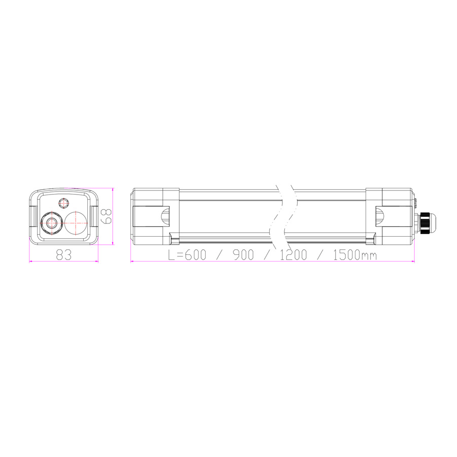 Tämä on uudentyyppinen IP65-tri-proof-valaisin, jonka JE on suunnitellut ammattimaisena LED-tri-proof-valaisimien valmistajana Kiinassa, yrityksemme innovaatiot ja muotoilu ovat aina olleet alan eturintamassa. Tämä kolminkertainen valaisin on muovipäällysteistä alumiinia. Kuori on täysmuoviputki, jossa käytetään kaksiväristä tekniikkaa, pohja on valkoinen ja valoa lähettävästä pintahajottimesta voidaan tehdä kahdenlaisia maidonvalkoisia ja läpinäkyviä värejä. Tämä muotoilu ei ole vain kaunis, vaan myös halvempi kuin puoli alumiinia ja puoli muovia, ja suojaustaso on erittäin hyvä. Samalla se on suunniteltu vedenpitävällä ja hengittävällä venttiilillä, joka voi purkaa lampun kuuman ilman ajoissa vaikuttamatta vedenpitävyyteen.